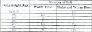 Fluke Dose: 10 mg Albendazole per kg body weight.